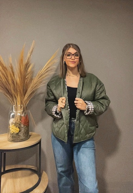Alliez style et chaleur avec cette doudoune matelassée verte, idéale pour affronter les journées fraîches avec élégance. Sa doublure intérieure à carreaux marron, bleu et blanc apporte une touche originale et distinctive, tandis que sa fermeture éclair centrale et ses poches latérales assurent confort et praticité.