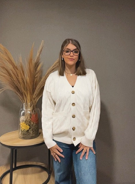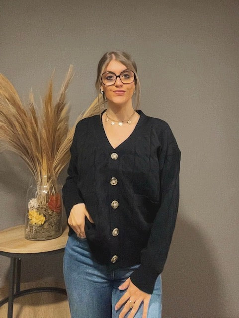 Découvre le cardigan noir et blanc, ton allié parfait pour associer style et confort au quotidien. Que tu veuilles un look décontracté ou plus habillé, il s’adapte à toutes tes envies.