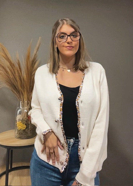 Allie confort et style avec ce gilet écru pour femme, parfait pour compléter ta garde-robe avec élégance.