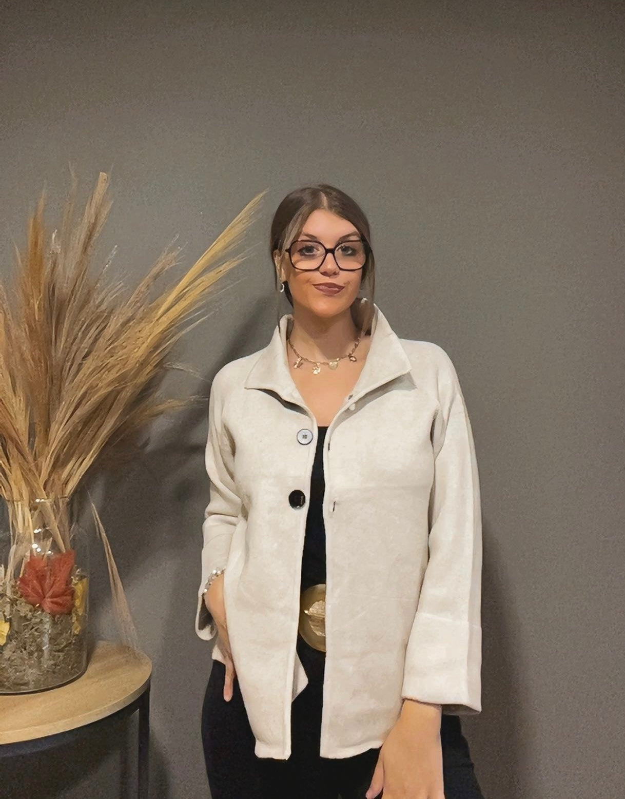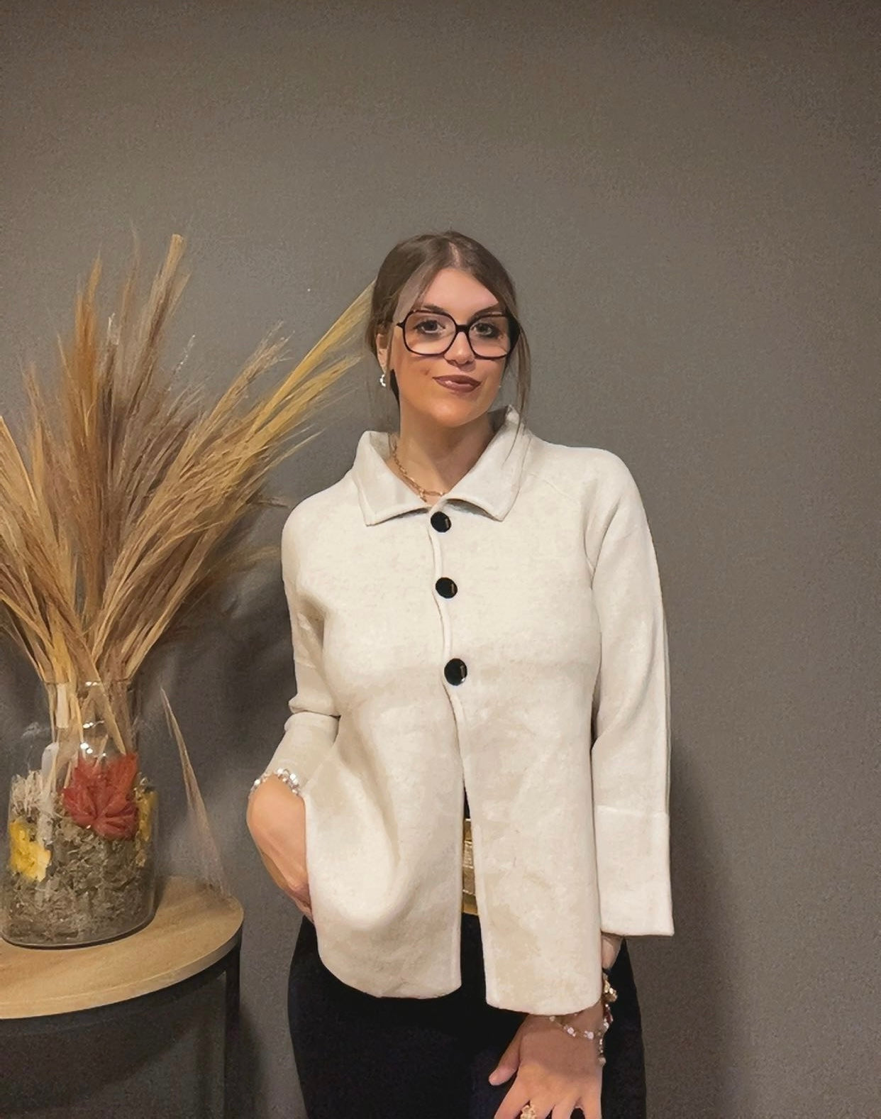 Alliant modernité et élégance, cette veste cape est la pièce parfaite pour sublimer vos tenues en toute saison. Sa coupe fluide et structurée offre une silhouette chic et confortable. Fermée par de jolis boutons contrastés, elle se distingue par son col raffiné et ses manches amples qui assurent une allure sophistiquée et féminine.