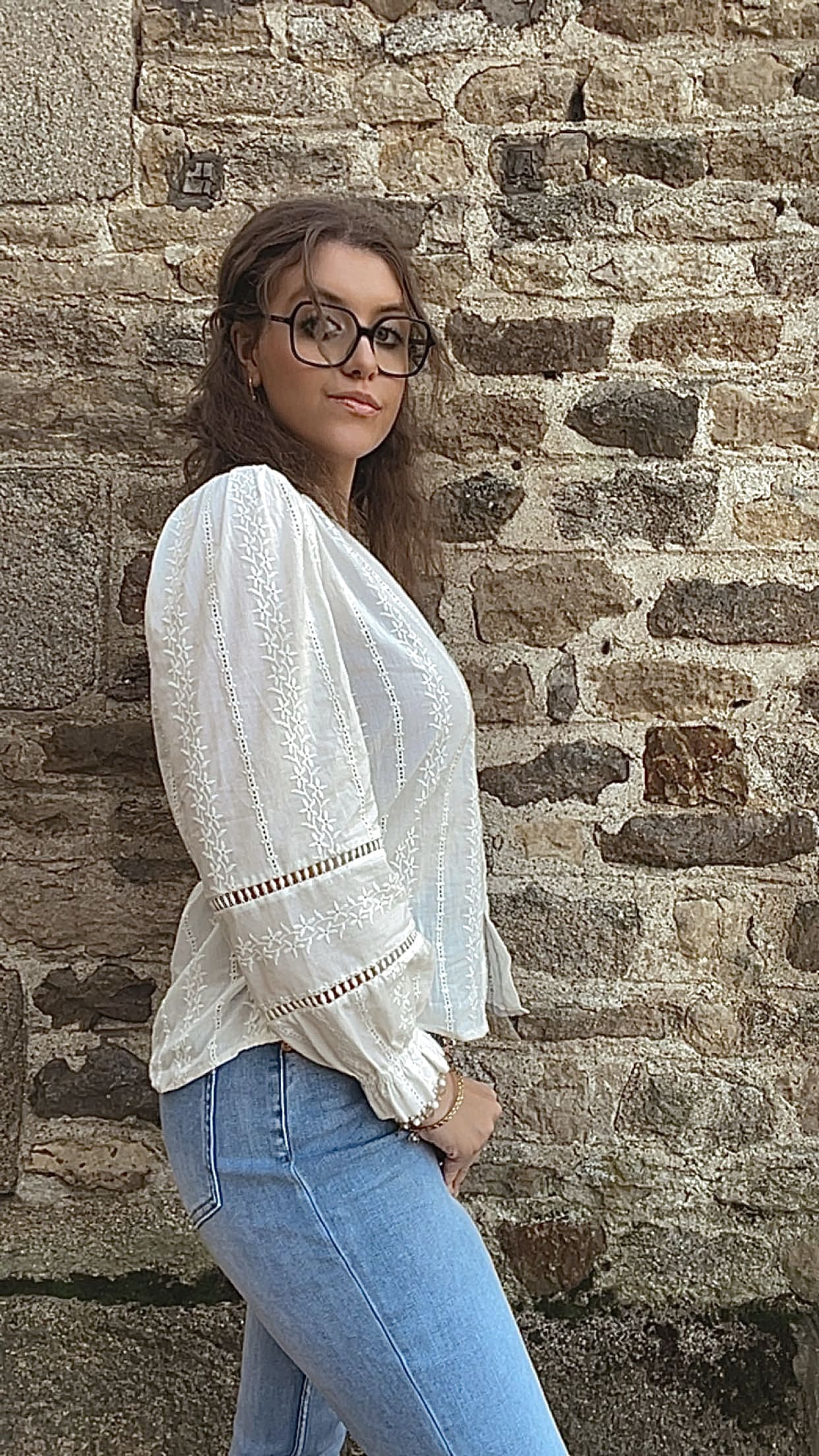 Affirmez votre style avec cette chemise blanche brodée, conçue pour apporter une touche de lumière et un esprit bohème romantique à votre silhouette.