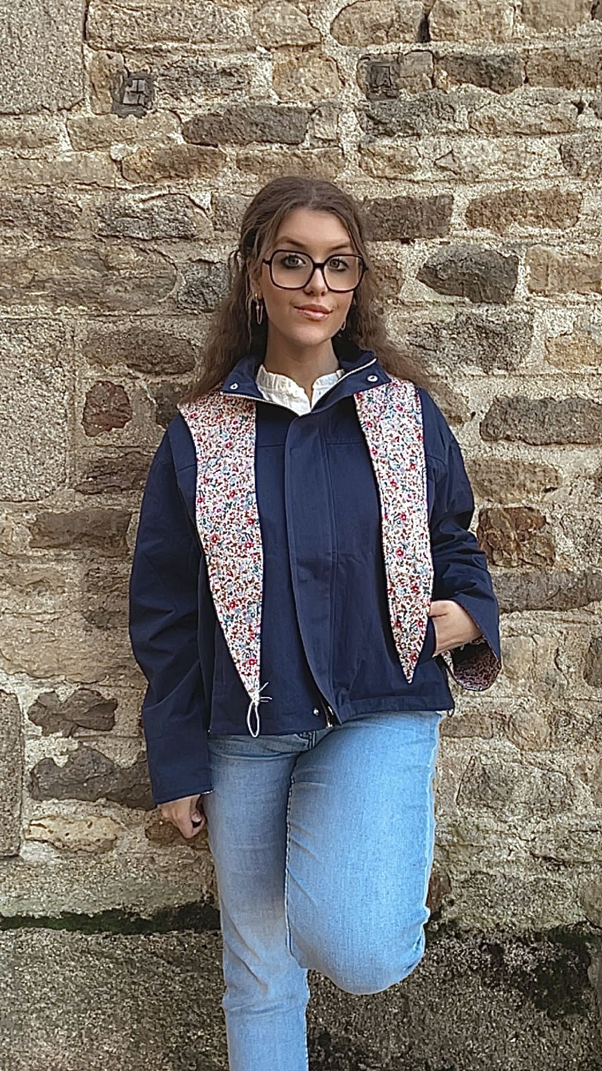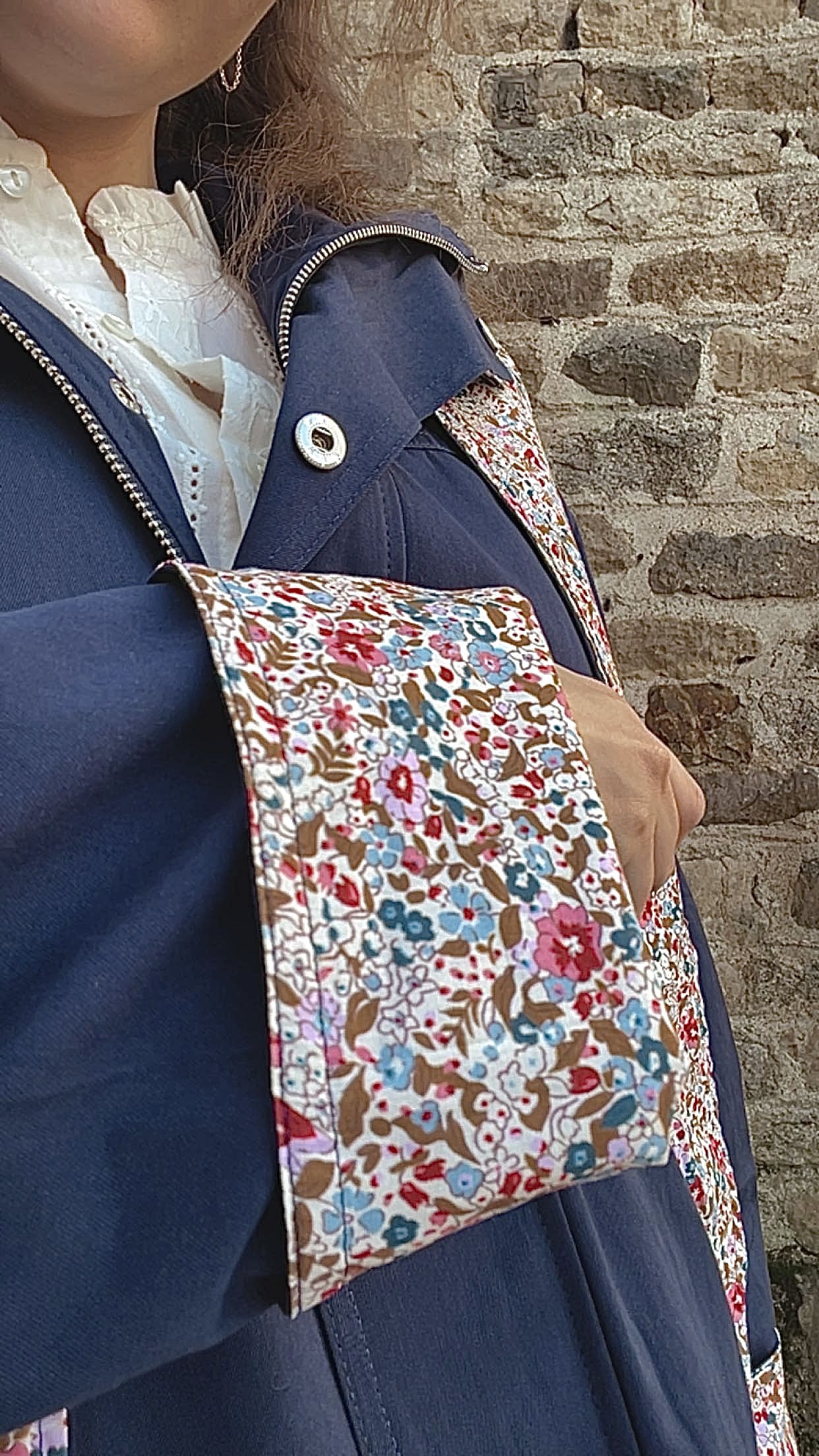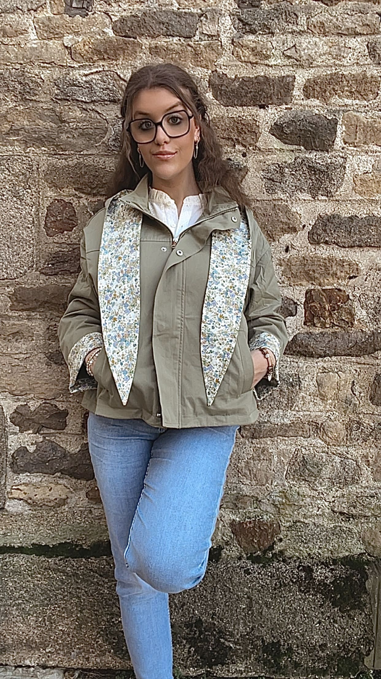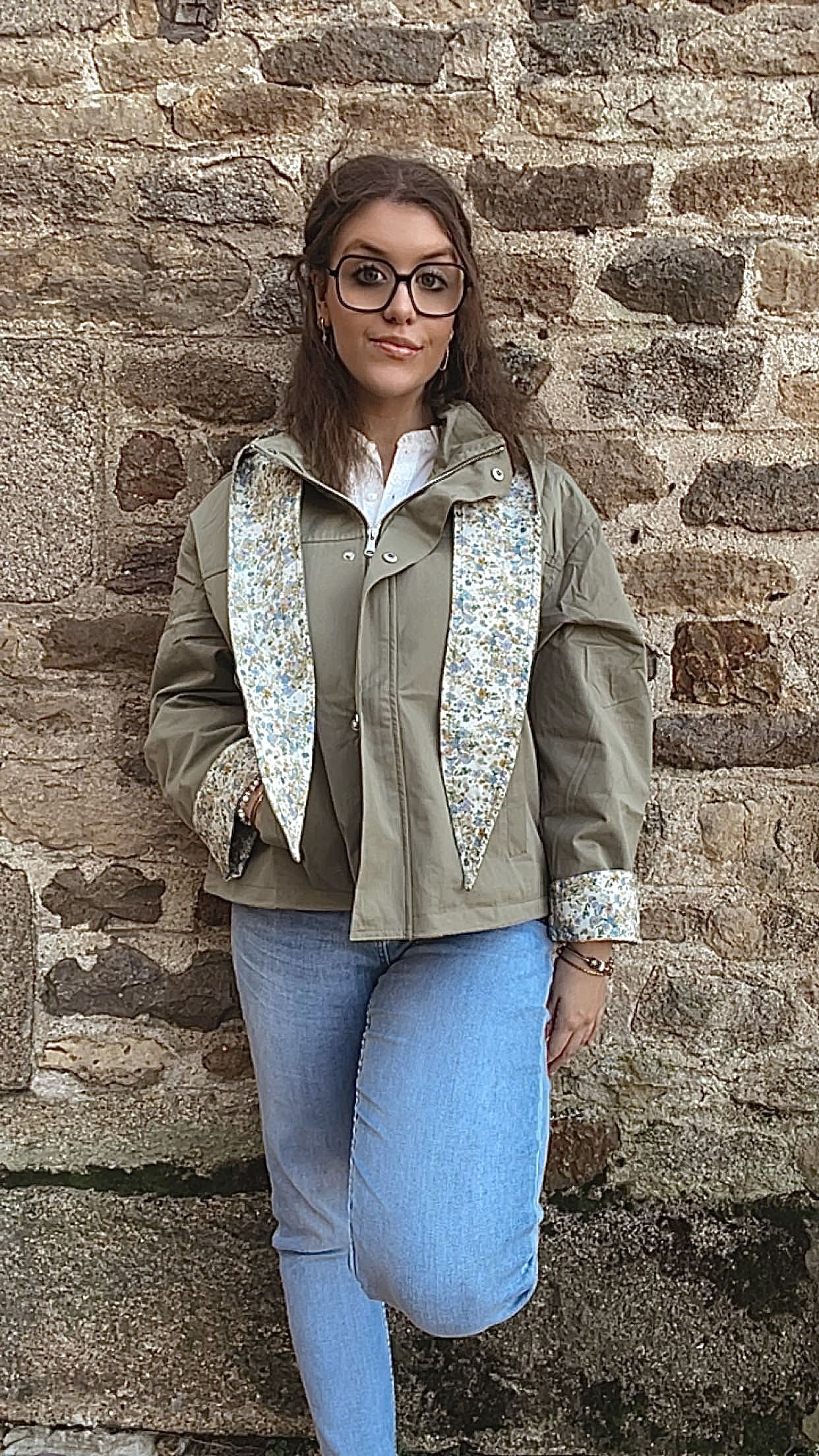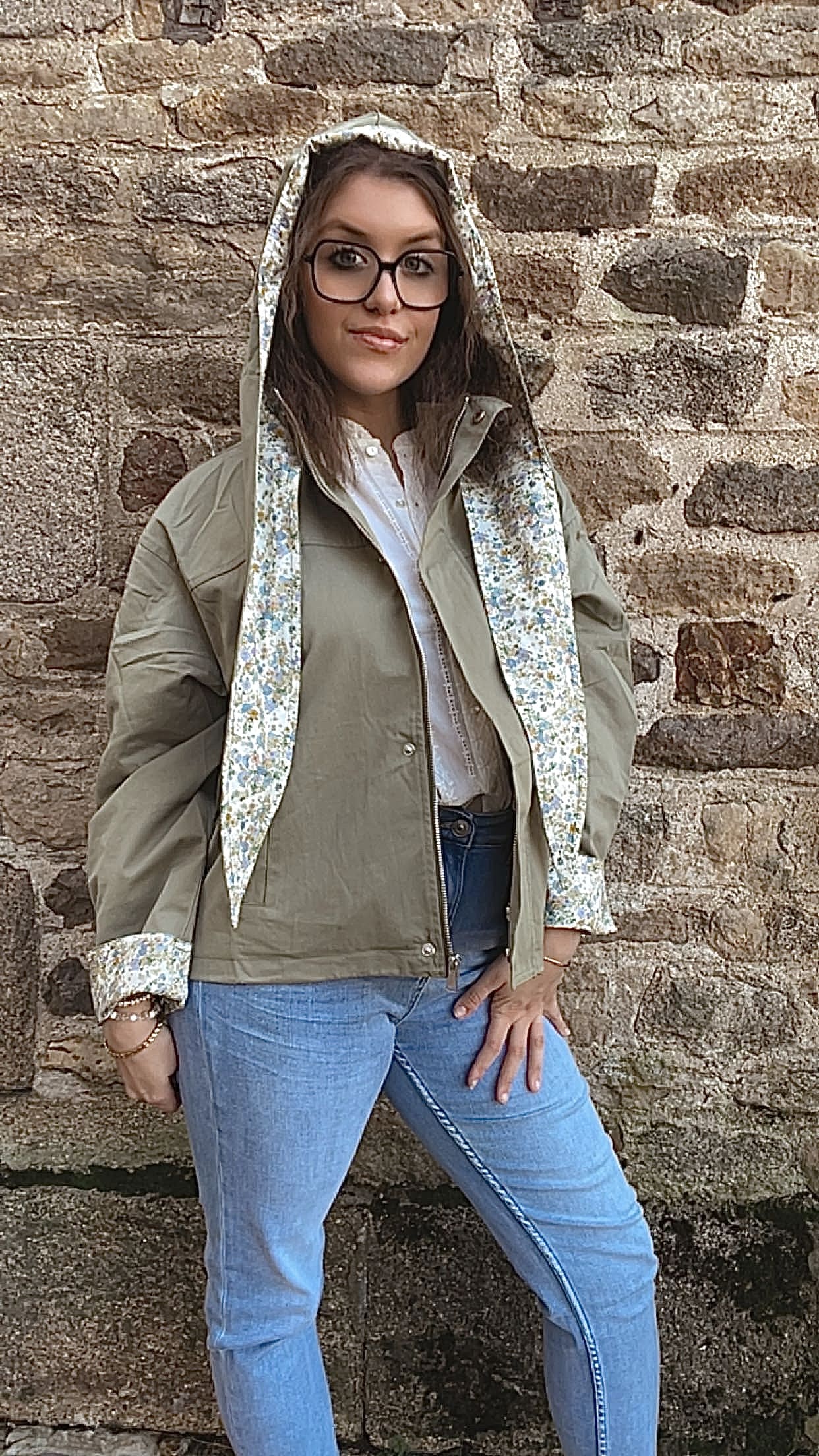 - Détails Contrastés : Une doublure à motif fleuri délicat qui habille l'intérieur de la capuche, le revers des manches.